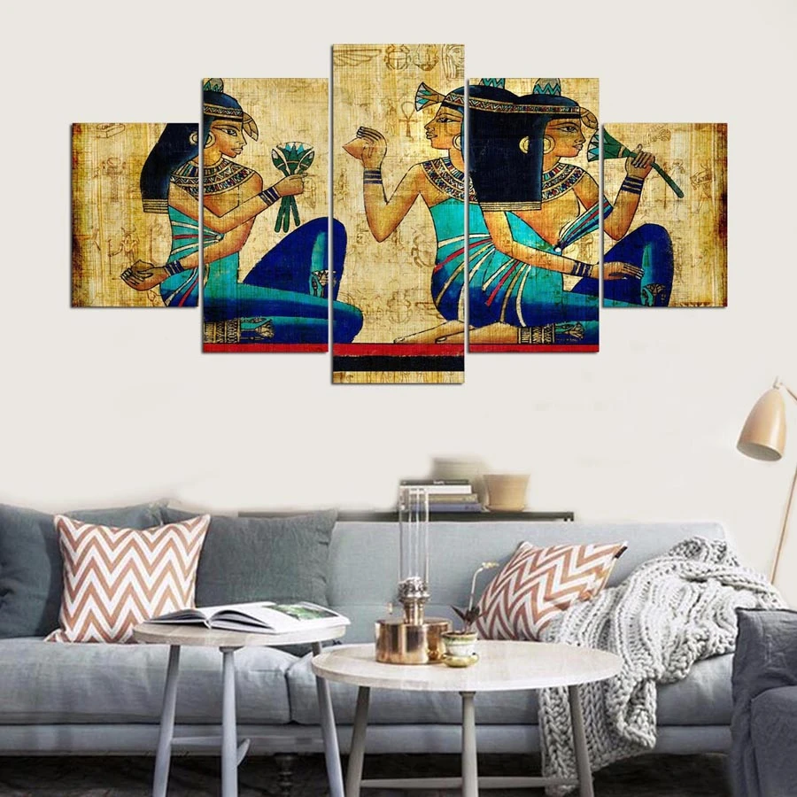 Peinture murale d'art cadre 5 panneaux | Tableau modulaire pour salon, thème de l'egypte ancienne, musique, imprimés de paysage, toile, YGYT | AliExpress